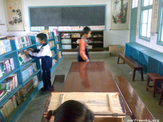 中心校的图书馆因为曾经接受过广州怡宝公司的捐助,所以还是颇具规模的。除了成人小说,少儿小说,网络小说,中外名著,童话故事,猜谜及智力问答书,作文书,科普书以外,图书馆内还有不少带图片的拼音读本,目前中心校的图书馆内比较欠缺初中的教学参考书。小学生是图书馆借阅群体的主体,初中生和小学生的比例差不多是1比5左右。不过无论是哪个年龄段的借书人群,都似乎对配有插图的书更情有独钟一点,尤其是11月底12月初送来的一批书里有很多动漫杂志,从在图书馆出现的第一天起就不断有人借阅。