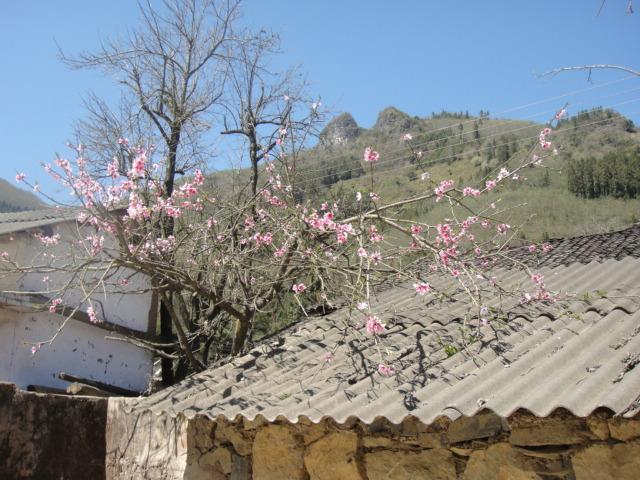 中午本打算和徐老师一起倒腾点小菜的,杨副坚持要带我们去传说中的“食堂”吃自助餐,说熟悉下大多人午餐的选择地,我们不想做饭时也可以选择在那里用餐。那“食堂”正对面那户人家土墙前一株粉似霞的桃花树让我心情大好,如沐春风。吃饭时,杨副允诺一周内在办公室再多加三根网线,方便我们带着手提来的老师,真地是无比的感动,感动到饭吃得少菜吃得多的我连菜都没吃多少……