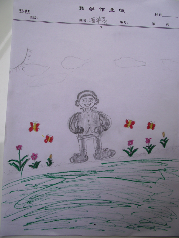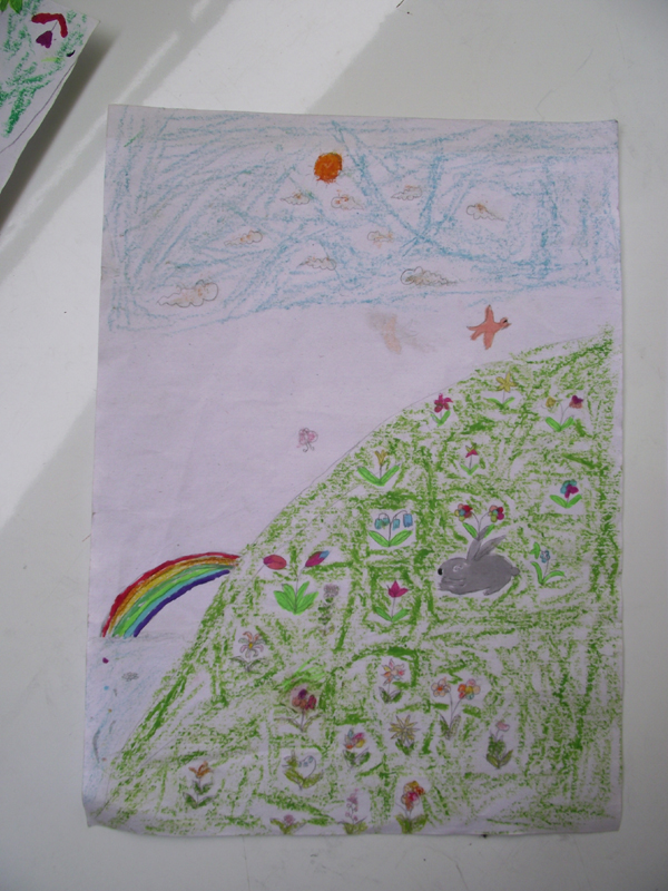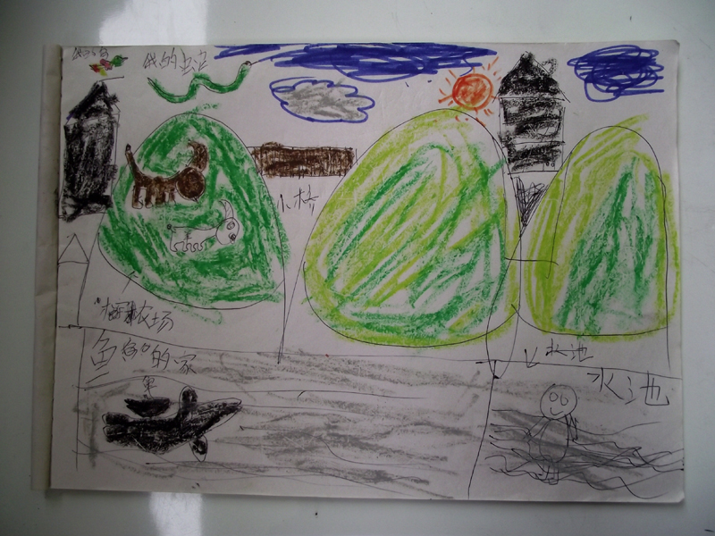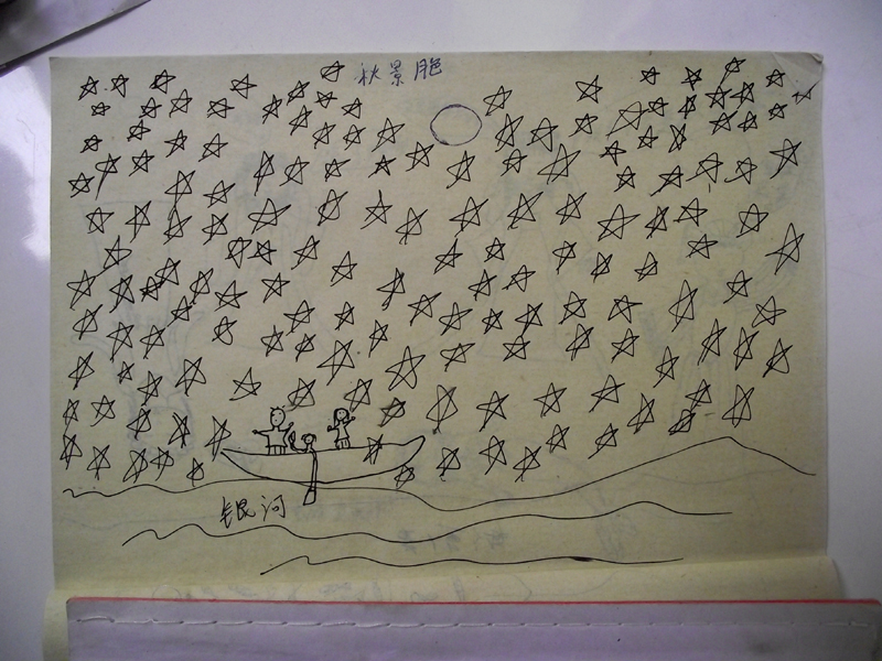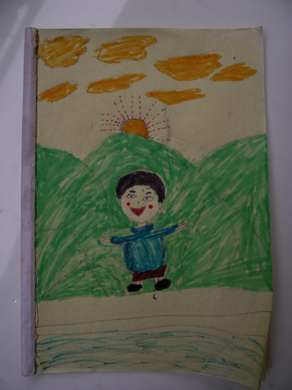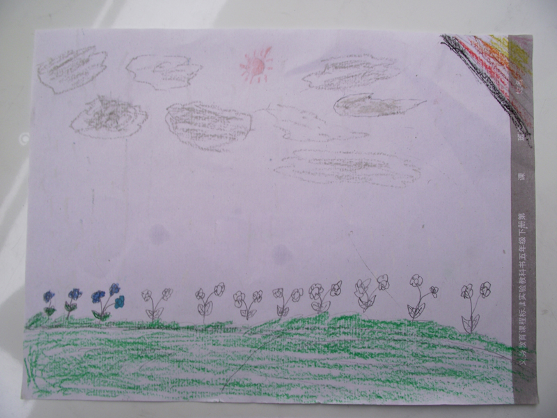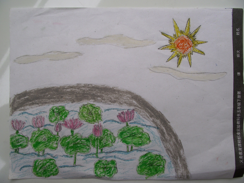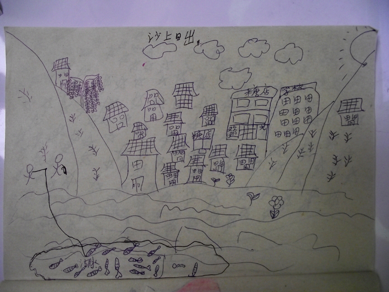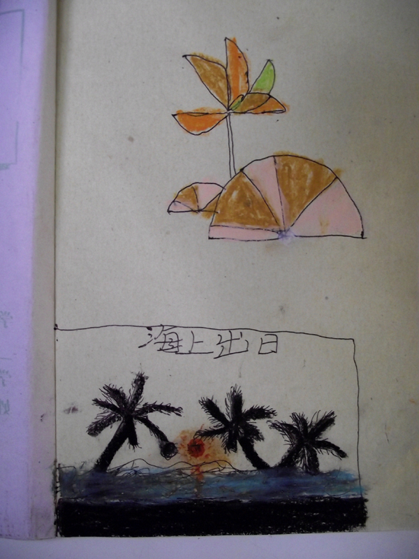 前面是复习上文古诗三首,让几个孩子上来听写,其他的在下面默写。些许紧张,“枫”字说错了。接下来是新课《海上日出》,我读,大家读,认知生字。叫了两个调皮鬼上来画自己看过或者想象中的日出。孩子们很兴奋。等俩孩子画完,再说说所以然,下课铃响。傍晚因为错字罚跑了10圈。白天的课堂画日出有了些意外之喜,孩子们对美术的想象一下子开了不少。之前看到孩子的画,心里一阵沮丧,没有想象力——现在看来其实孩子没有问题,有问题的是我这个大人。