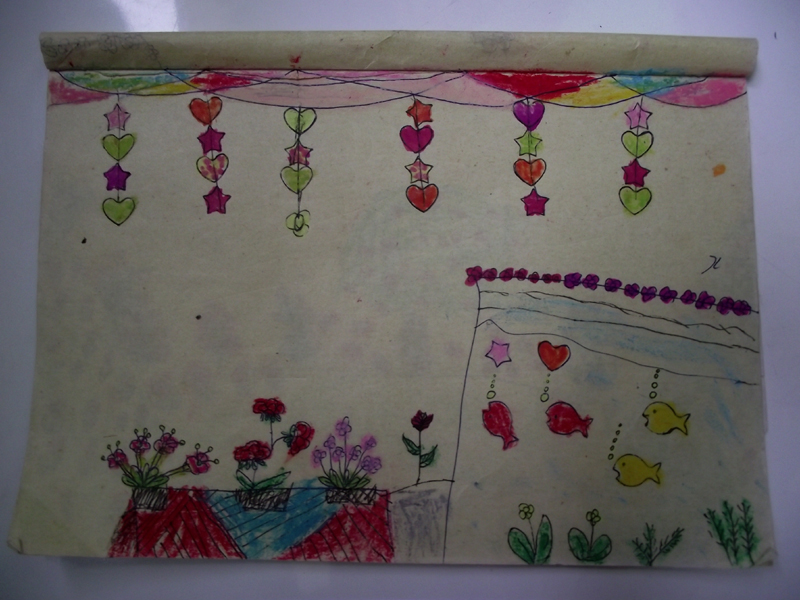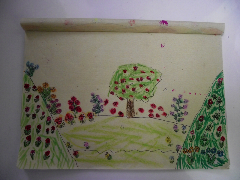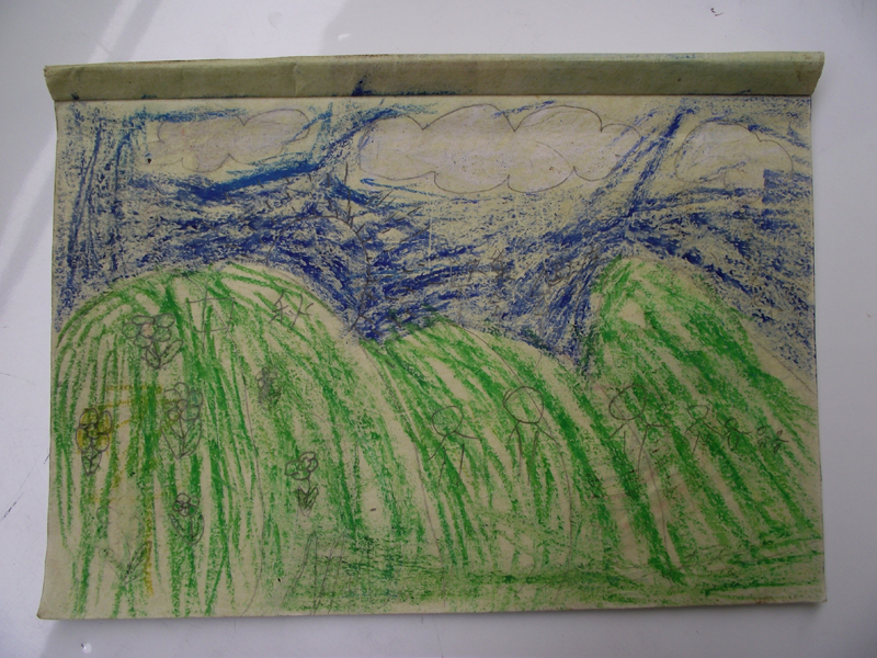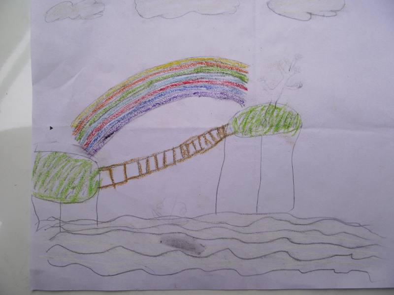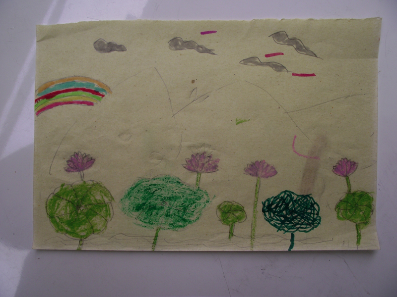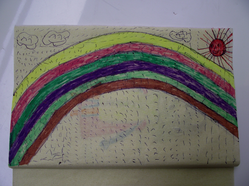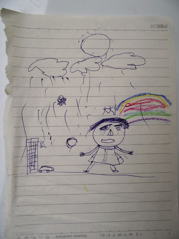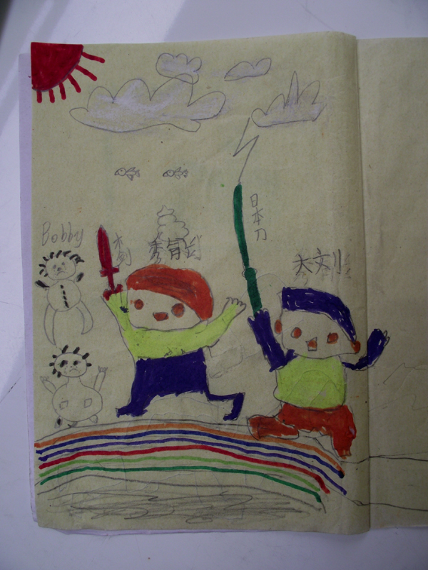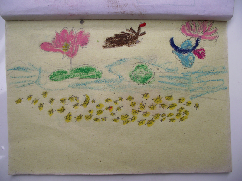 前面是复习上文古诗三首,让几个孩子上来听写,其他的在下面默写。些许紧张,“枫”字说错了。接下来是新课《海上日出》,我读,大家读,认知生字。叫了两个调皮鬼上来画自己看过或者想象中的日出。孩子们很兴奋。等俩孩子画完,再说说所以然,下课铃响。傍晚因为错字罚跑了10圈。白天的课堂画日出有了些意外之喜,孩子们对美术的想象一下子开了不少。之前看到孩子的画,心里一阵沮丧,没有想象力——现在看来其实孩子没有问题,有问题的是我这个大人。