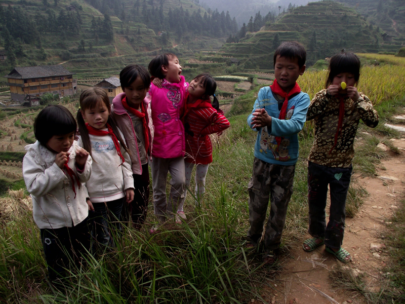 被簇拥着上了车,等待,等待,等待。孩子们站在车窗外,两个男生突然冲上车,说要去木瓜。直到某人认真地询问才笑呵呵着下了车。