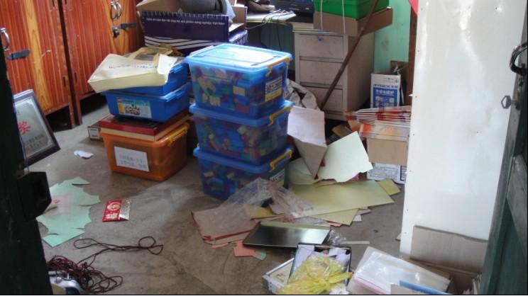 经过四个小时滴水滴米不进的拼搏,终于理顺了,整理出很多有用的资料和教具,收获不小。而且,此间整理完之后,中间约有2x2m的空地,可以当做备用办公室或者临时排练场(记者站或者广播站的)。