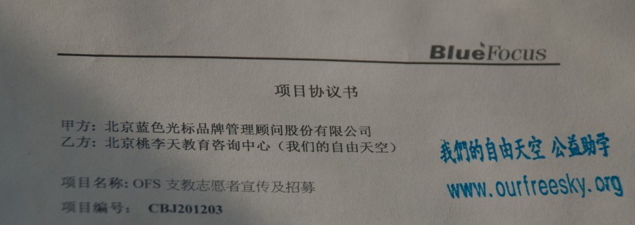 12月21日,蓝色光标集团持续支持OFS。蓝色光标一直以来积极关注社会公益,履行企业的社会责任,系统参与NGO支持、环保、教育等领域的公益事业。旗下智扬公关为OFS的服务,是蓝公益第一个以“公司志愿行为”参与的教育类公益项目,而OFS宣传手册的策划和制订,也是智扬为OFS提供的专业服务。 "PO>@tY
