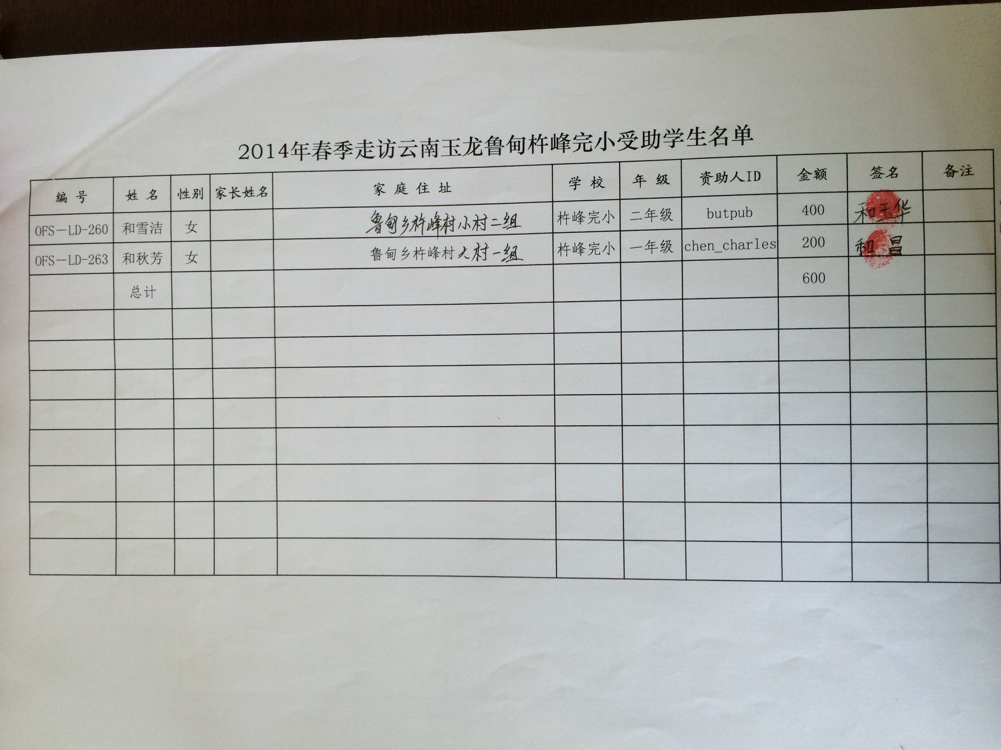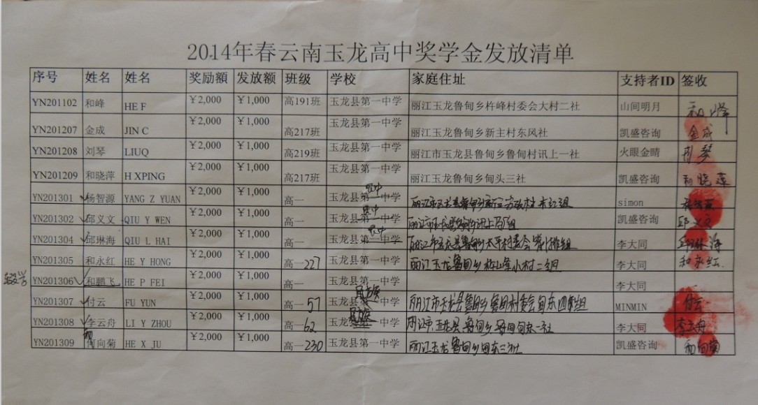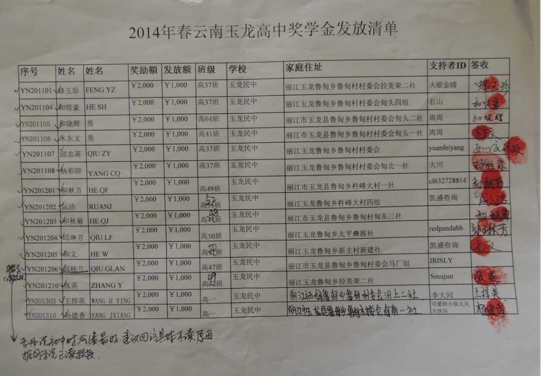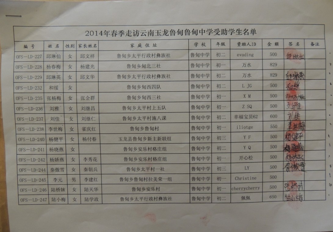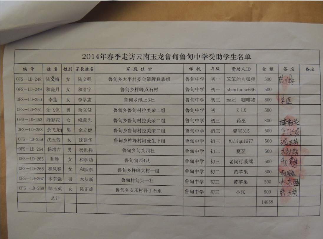 [公 示]2014年3月云南鲁甸助学款发放清单与证明(2013-2014年度) [复制链接]