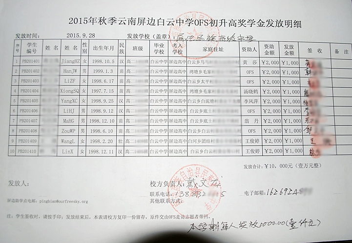 【公示】2015年秋云南屏边白云中学OFS初中升高中奖学金发放公示 [复制链接]