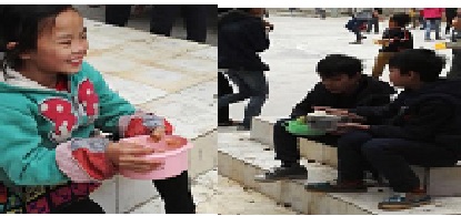 七百弄实验学校是一所全日制九年学校,小学部有1000多名学生,初中部有800多名学生。我们到达学校时蓝主任正在通过广播通知有关学生前来,我们尚未坐定就有学生陆续过来了,他们希望的眼神中略带怯意,没有统一的校服,更能看出学生的家境了。我们五个队员,发奖学金拍照谈话一气哈成,所有工作都有条不纹地进行着,刘大哥的洒脱老练,小丁的认真仔细,大玲的亲和善诱,秀秀的领导风范,效率超高,到下午放学前把所有当天的工作全部干完。在等老师写评语的空隙,我们看到课余的学生们有的在露天的乒乓台打球,有的在看书,有的在跑步,我们特别留意了一下吃饭的学生,一个简易饭碗里,碗的下层是饭,碗的上层是白菜加肉丝,他们吃得津津有味,干干净净,一脸的满足,全然没有城里孩子的挑食陋习。