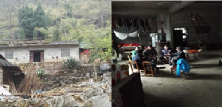 在沆洼的山间小路前行一段,终于在雨水朦胧中跳出了几间房屋,其中 的一家就是我今天要走访的家庭。建在一个山坡挖出的平地上,三间六成新的平房,是用那种最便宜的水泥砖砌成的外墙没有任何粉刷,屋顶看上去是准备再建设一层的,但目前是没财力只能是准备着。