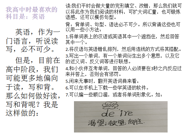 首先先说一些学习方法吧:因为我高中最喜欢的、学的最好的一门课程是英语,所以我