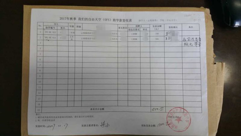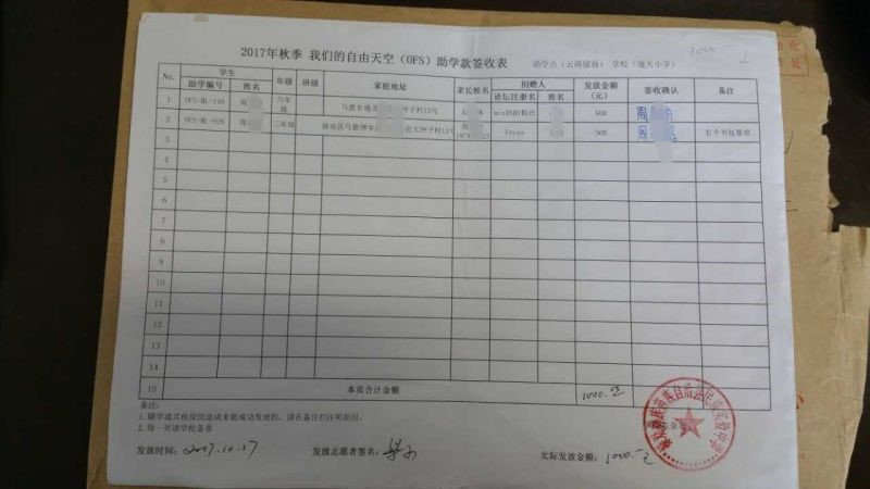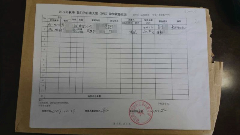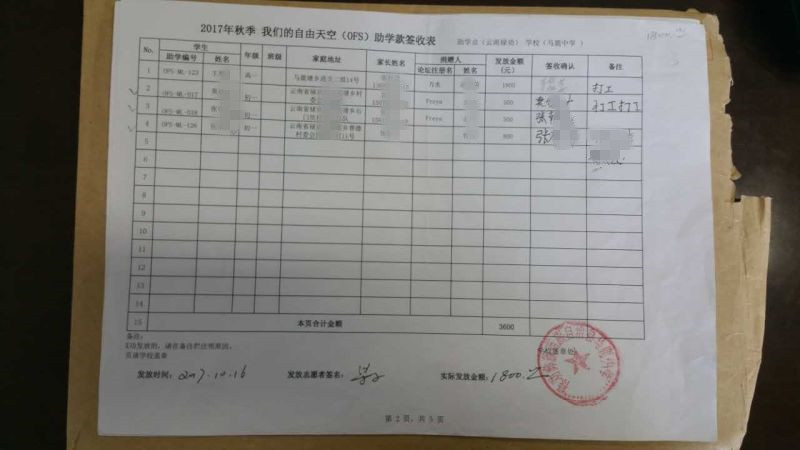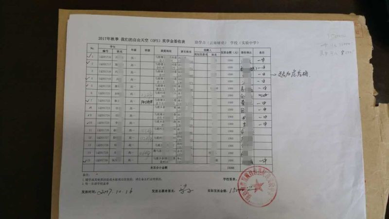 (为保护孩子权益计,孩子的真名和学校在公示中隐去,其中10人未发的后期整理出对好账会通知资助者,原版文件将发到资助人邮箱,如有疑问可发送邮件到:luquan@ourfreesky.org) ?&zi{N