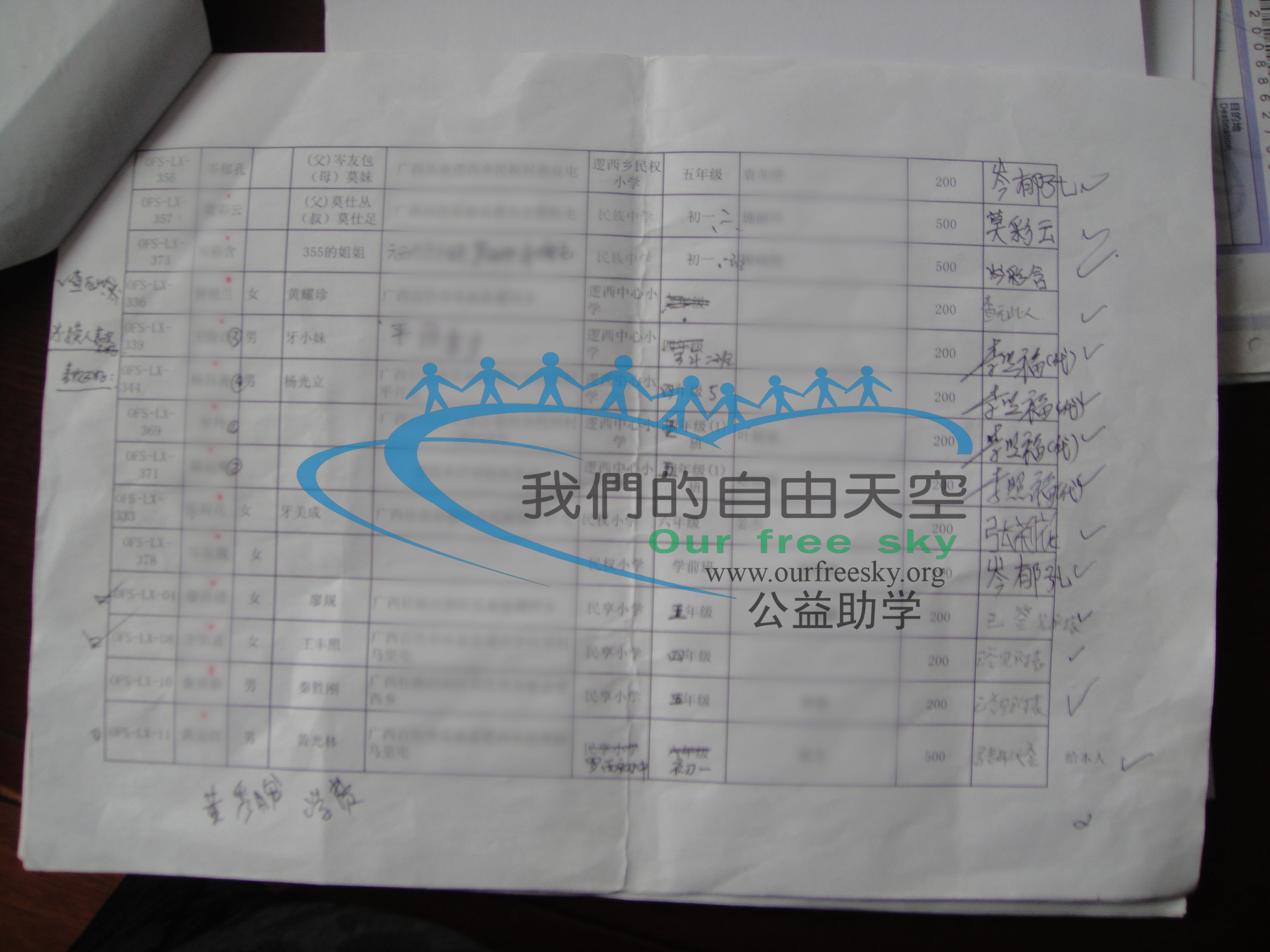 2011-2012年(上半年)广西逻西助学工作汇总-逻西(OFS-LX)资助人请关注
