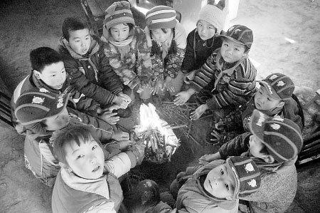 教室里异常寒冷,孩子们围坐在火盆前取暖 Nujnm$!,Q