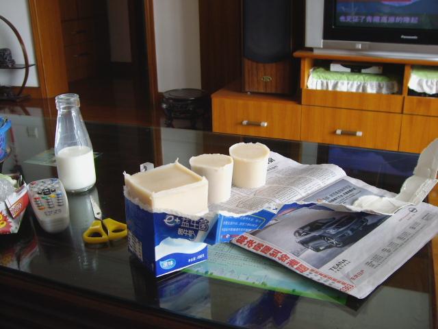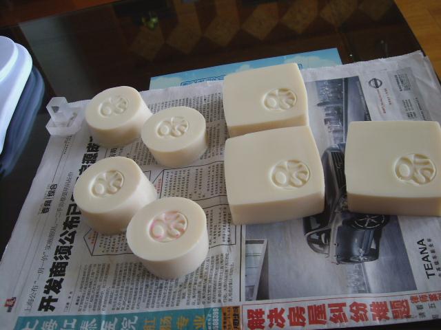 圆的小皂皂是那一次性杯子做模子的~给身边的人用了,出售的是三块大皂皂~