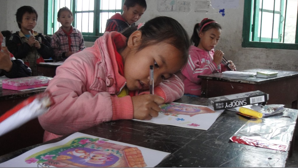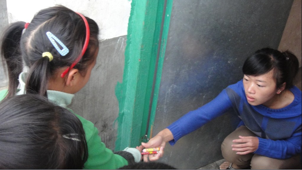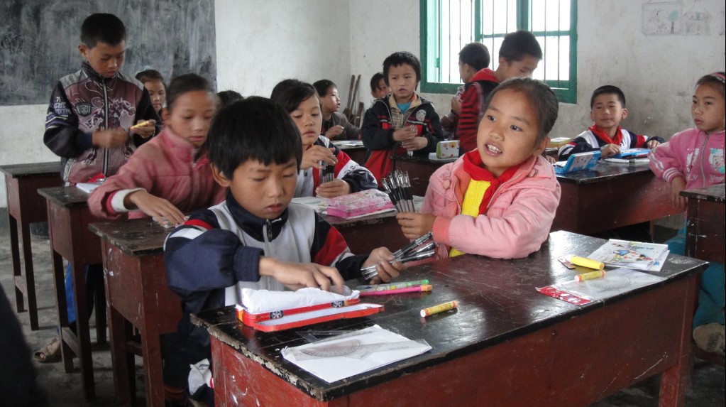 孩子们很有礼貌,每一位拿到文具的孩子都会向班主任杨老师轻轻颔首致谢。