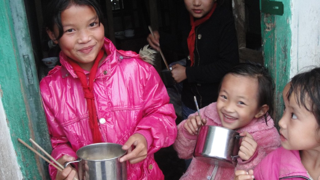 上周开校会,决定这周开始吃ABB赠款购买的大米,孩们早就候在村委会门口等着帮搬大米了。