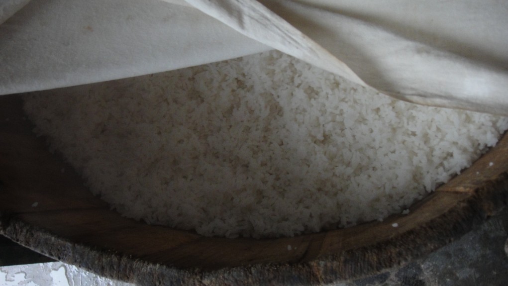 我:其实,我想是因为你们的蒸饭方法导致米不“泡”吧?我们那边用电饭煲蒸,让米把浸泡的水都吸收了,就“泡”起来了;你们这边是先用水蒸一次米,捞出来再蒸一次,水分就少多了,所以“泡”不起来吧?