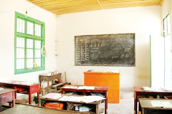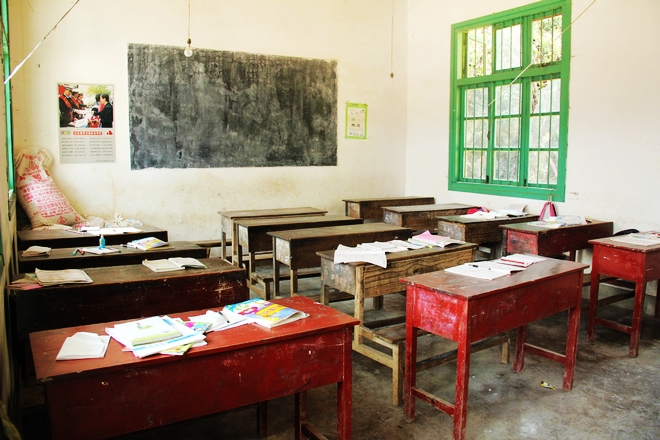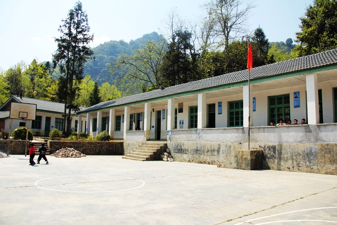 太平小学,一排平房便是教室。整个小学共四个班,43个学生,全部住校。