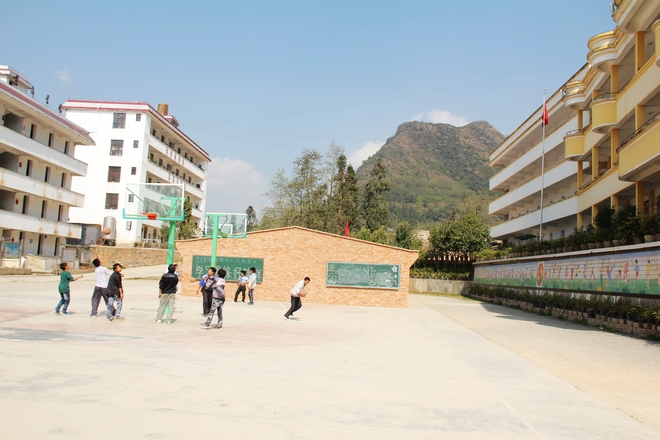 白云中学,环境还是不错滴,白色的三幢是教学楼,黄色的是办公室。操场中间的矮土房是临时的教室,也是因为要重建教学楼,所以先将就着。