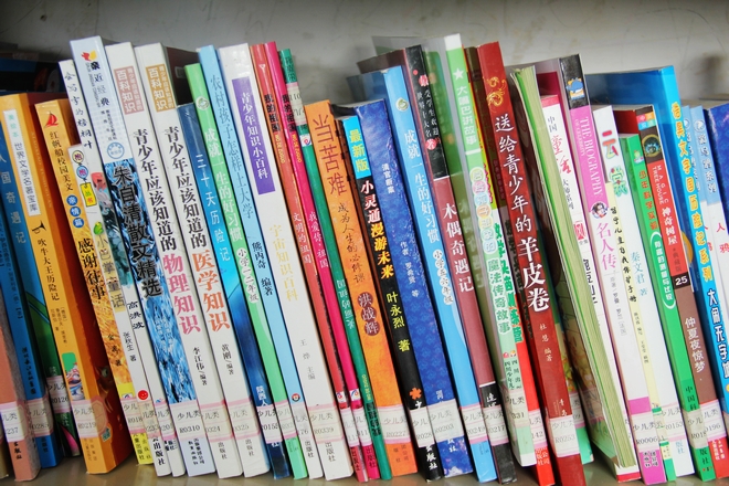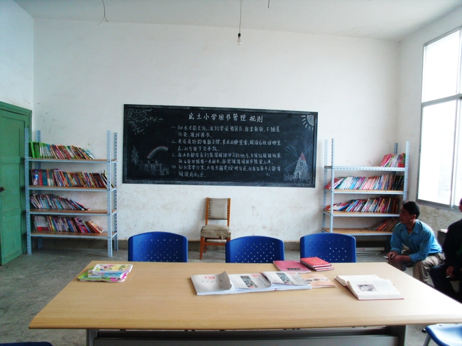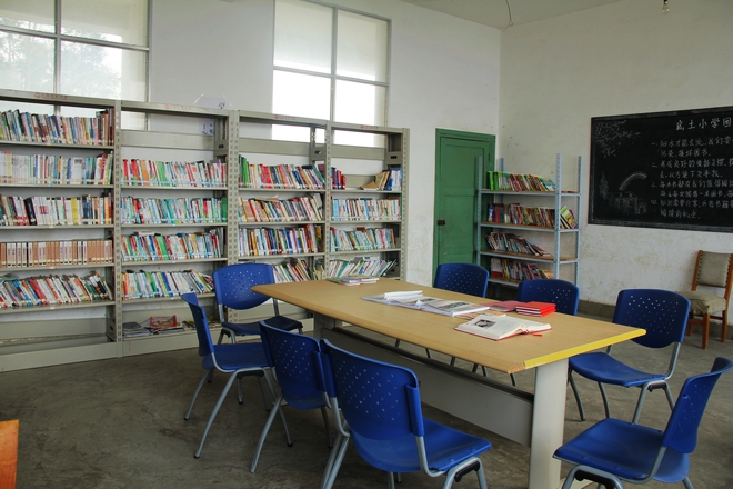 另外,底土小学的OFS图书室,其实只有黑板左右两侧那两个书架,门边那一整排图书都是红河州农家书屋的书籍。