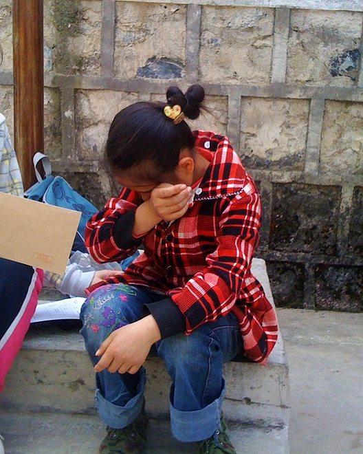 看到孩子抹眼泪的照片,想起上周来自中心校和马马的消息,心里一阵一阵发酸。