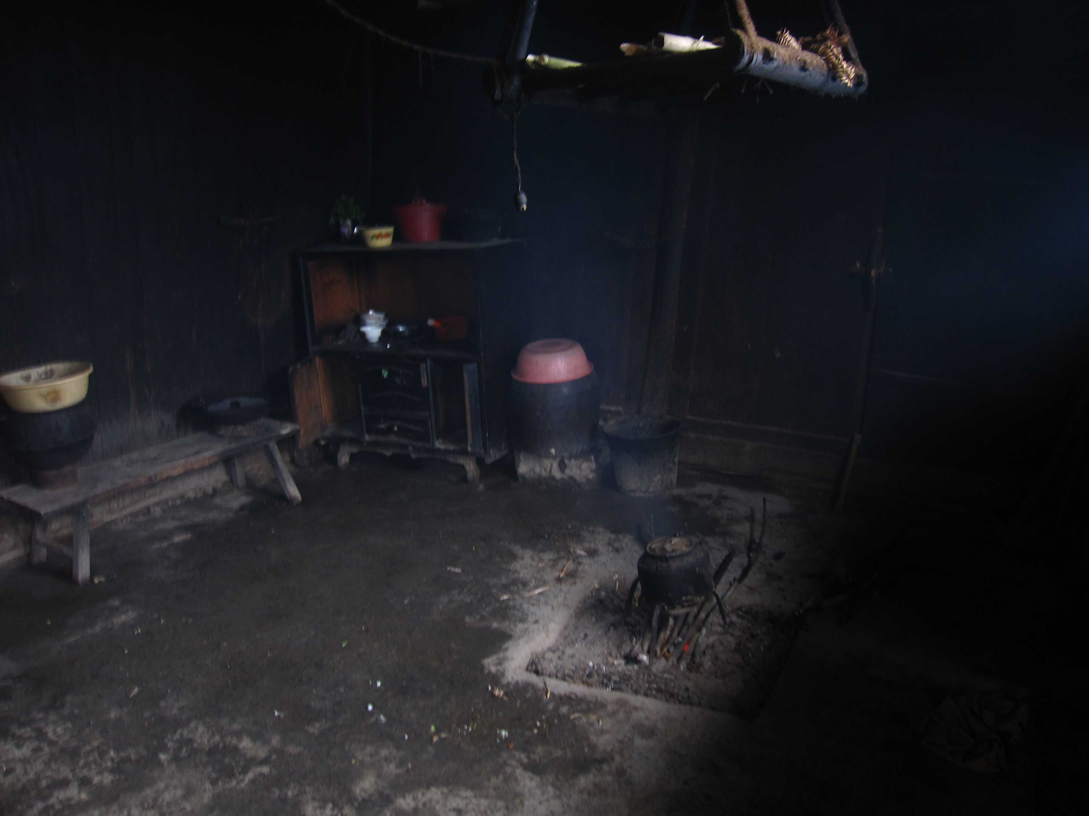 家里内景,炕上方没有熏肉,只有角落里一堆堆白菜,这也是他们的主食