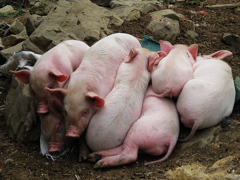 走回乡里路上看见这群和谐的小猪,这世上还有什么动物比它们幸福......