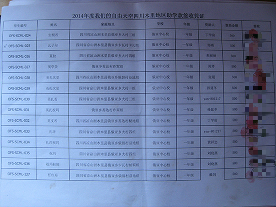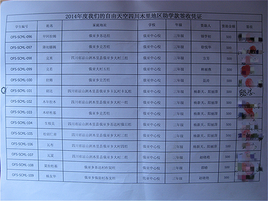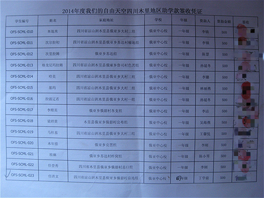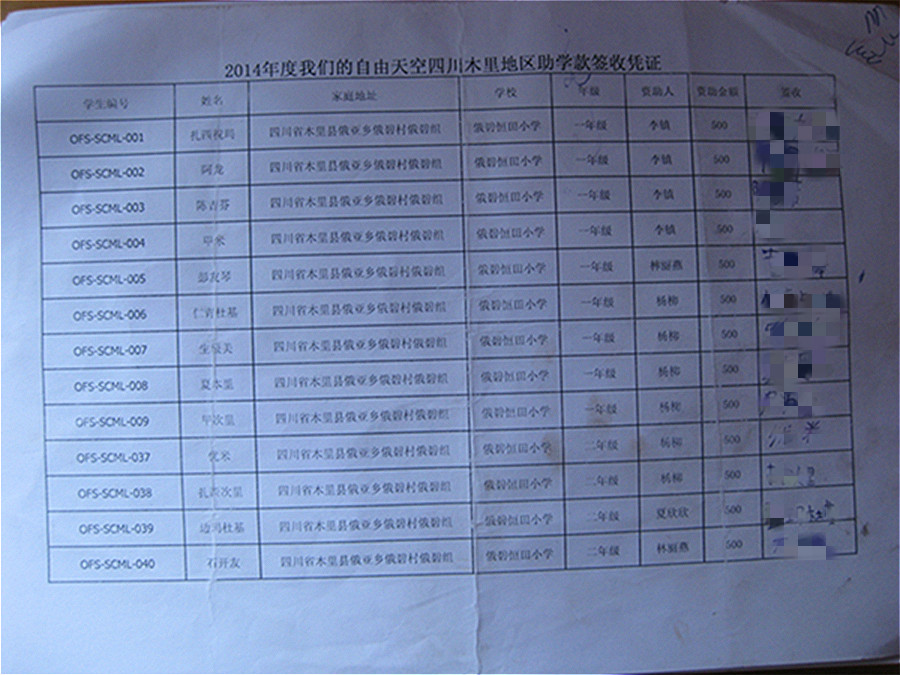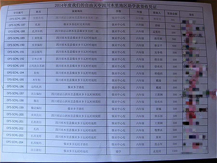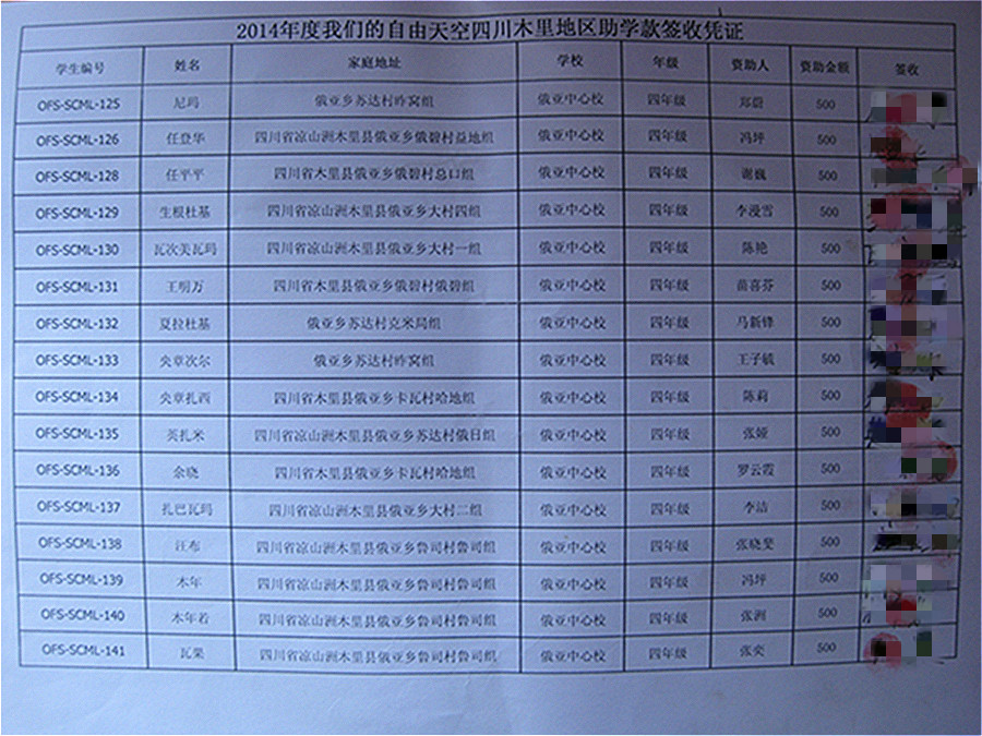 [公 示]四川木里助学点2014年春季助学款发放公示 [复制链接]