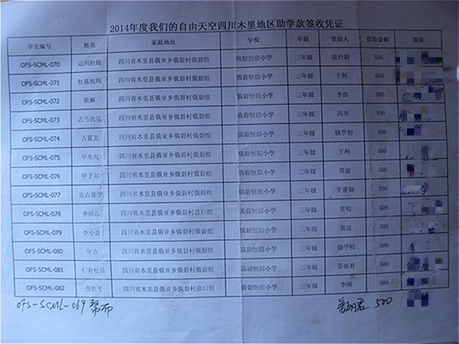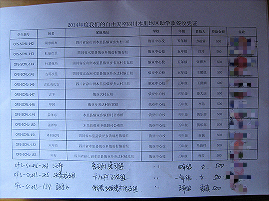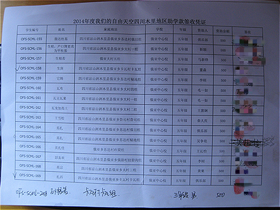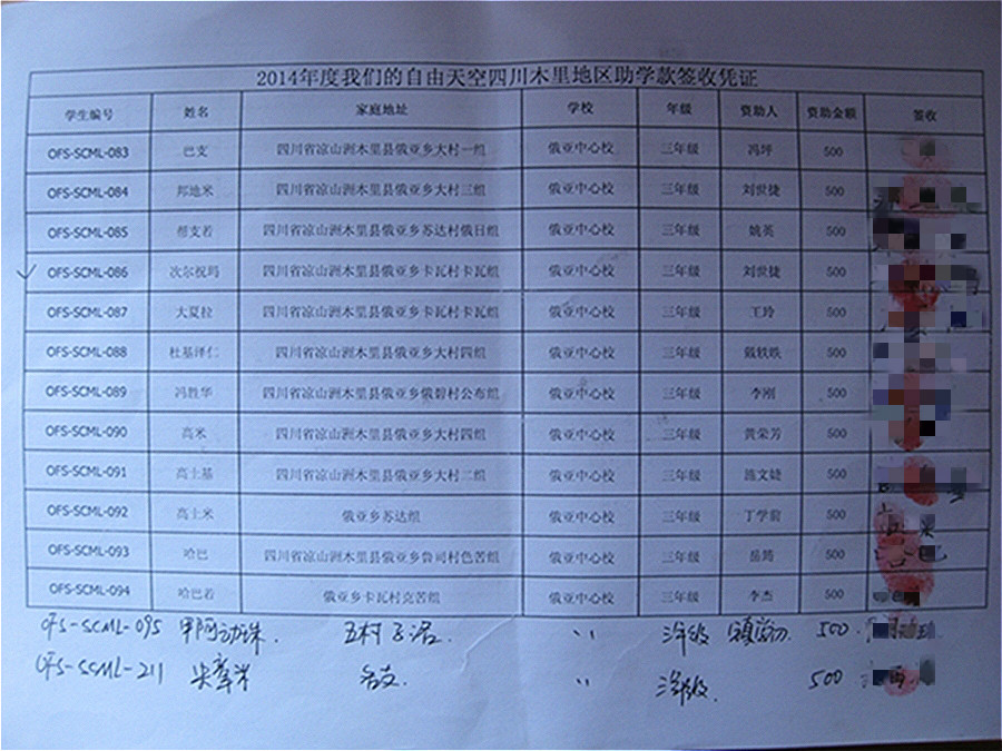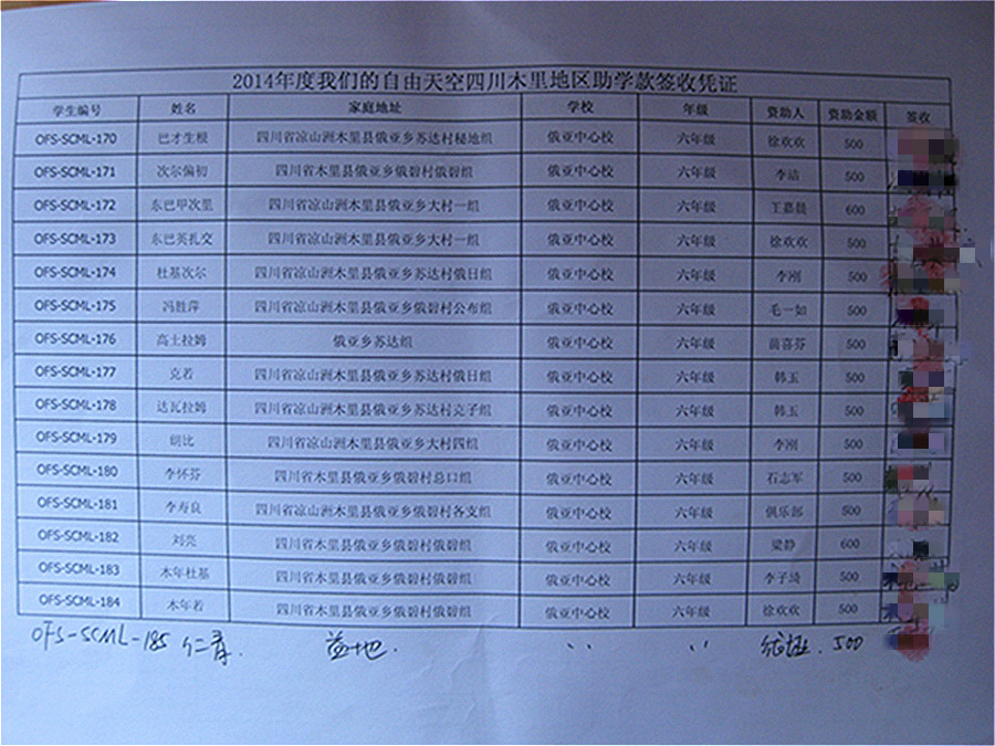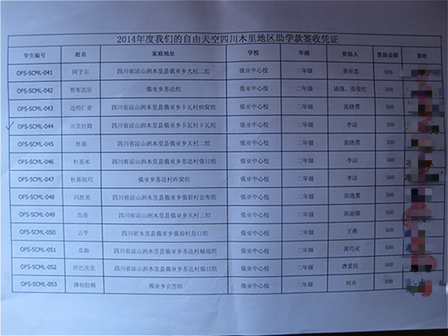 [公 示]四川木里助学点2014年春季助学款发放公示 [复制链接]