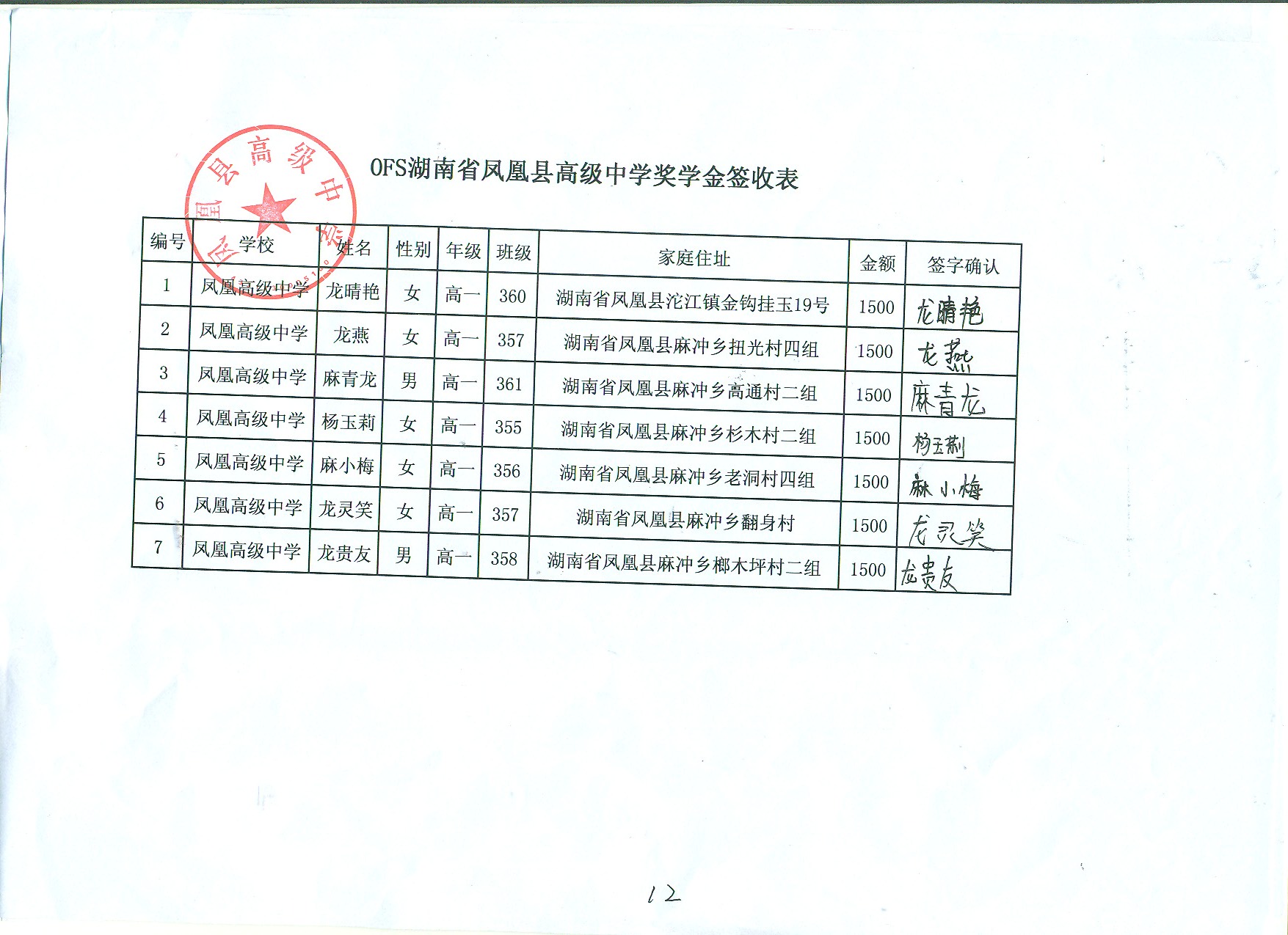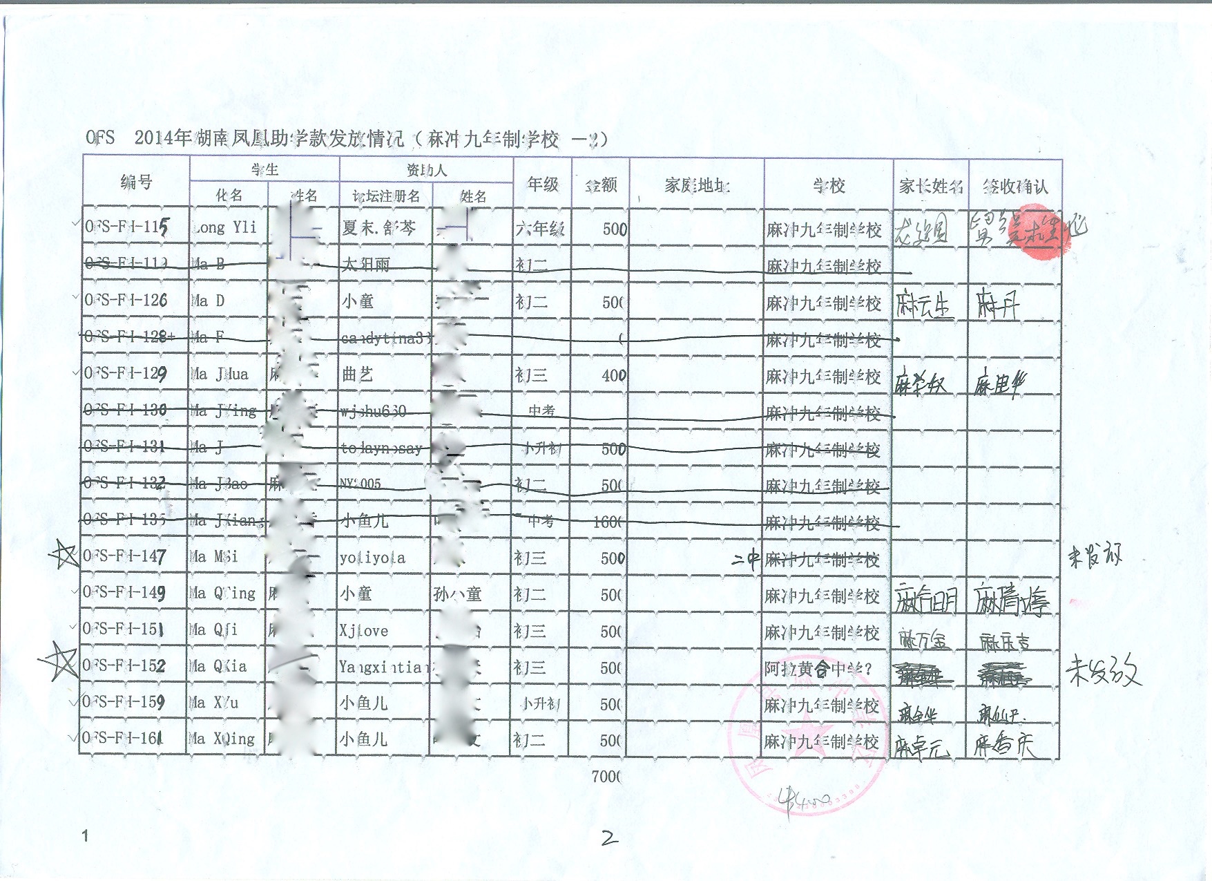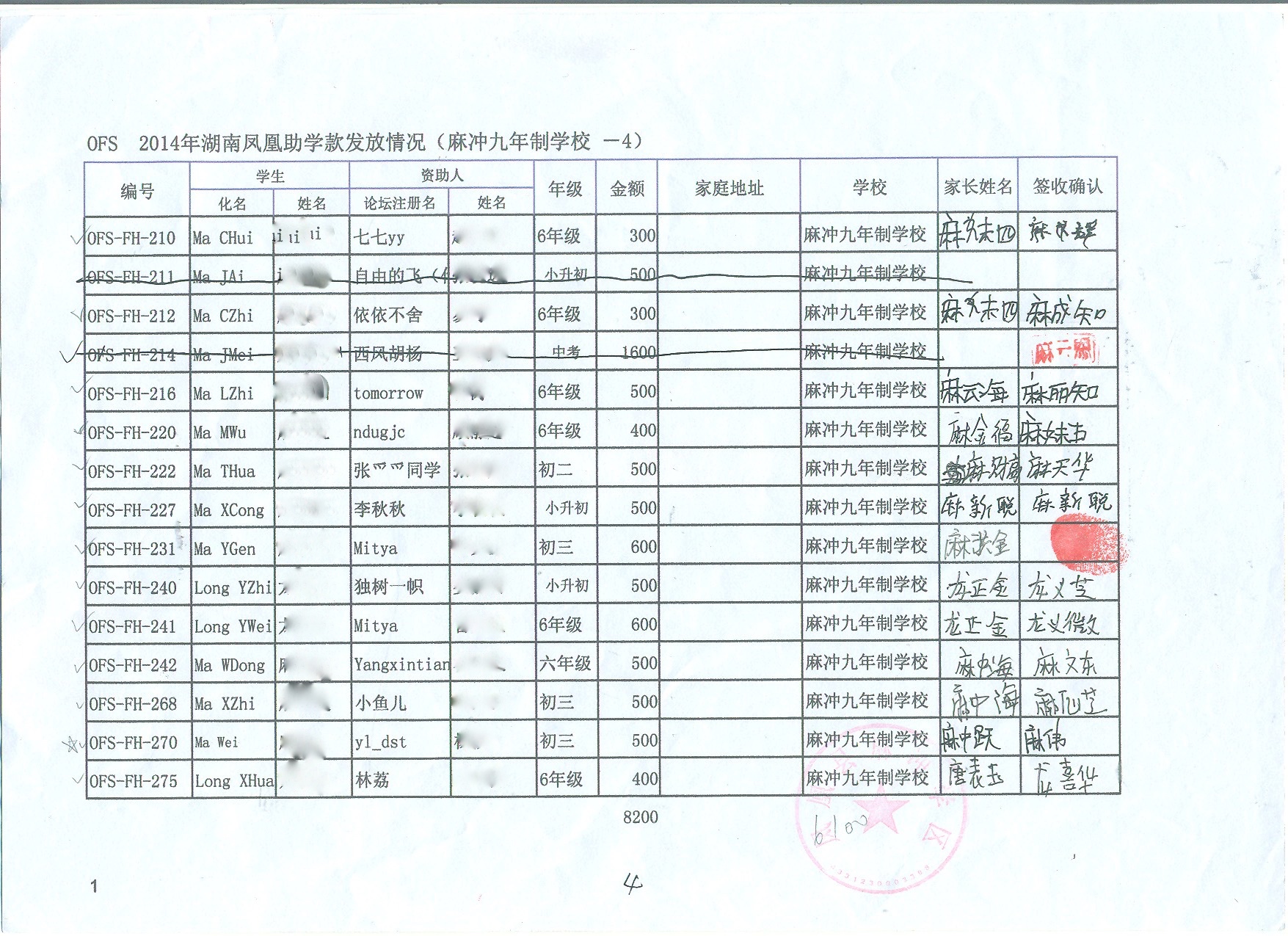 [公 示]2014年10月 OFS湖南省凤凰县助学款发放公示 (已完成) [复制链接]