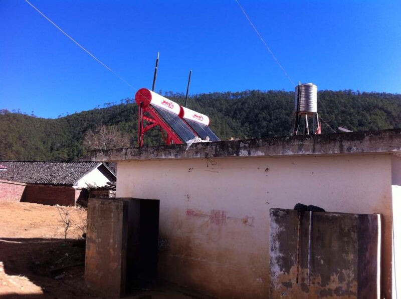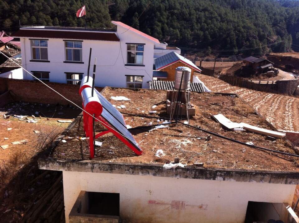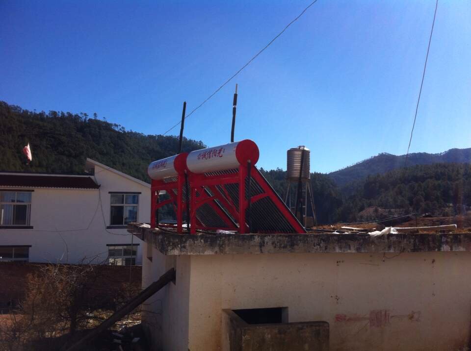 四川木里屋脚乡中心校的太阳能热水器终于安起了。 DZ92;m