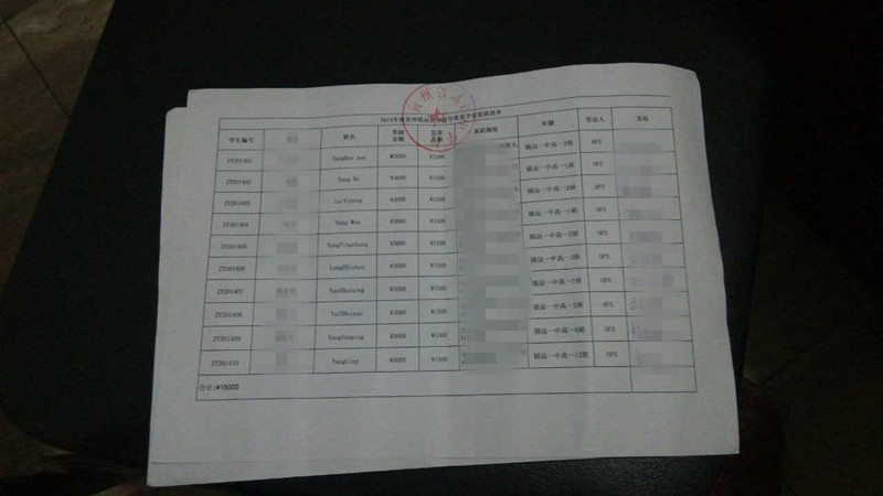 [公 示]2015年1月贵州镇远初中升学奖奖学金发放公示 [复制链接]