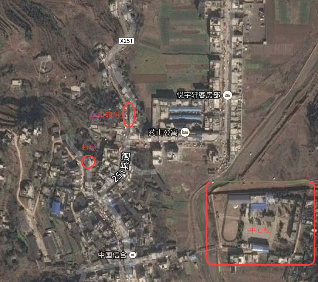 大村算是在中间,去另外两所学校都是差不多一个小时。半箐和小村之间差不多一个半小时。(徒步)