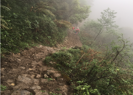 问题是:我们只是一次走访。村民们每天都要在这样的山路上跋涉(从山上到地里干活,否则就没得吃),孩子们上下学也在这样的路上,我们就亲眼看见孩子们随大人下山。这里的村民们手脚残疾的特别多,和这样的道路状况有关系。