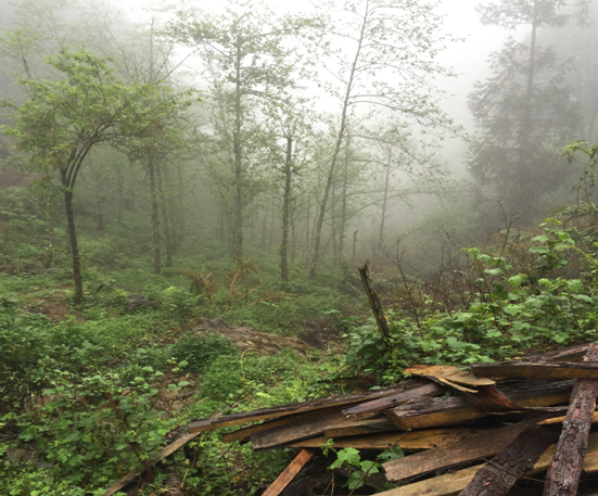 我们这一组走访木都底村。中心校的老师开了辆越野车走了一小段硬化的乡道后,很快就进入了泥泞的村道,车挂一档如同船一般在可以没到半个小腿的泥淖中艰难前行,坐在后座可以明显感到车的后轮在飘来飘去,更要命的是道路狭窄,贴着山体,左边就是深不见底的山谷,还时不时飘来浓雾(高寒山区里遇见浓雾是再正常不过的事了),有时能见度不足20米。半道上遇见几个苗民,或开着摩托(此时只能推了),或牵着马,在泥泞中跋涉。忽然开车老师的手机响了,随我们一同走访的另一辆车呼叫他们的车陷在泥泞中动弹不得。开车的老师和志愿者李伟(女,她英明地带来了雨衣雨鞋)下车去救援后车,过了好一会他们才深一脚浅一脚地回到车上,膝盖以下沾满了泥。