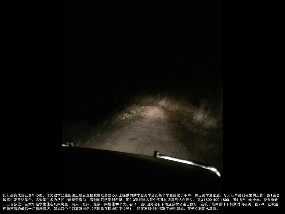 这几天,虽然要摸黑进山,虽然要冒着车陷进泥泞和山洪的危险进村,但起码还有路、还有乡政府提供的车,令人没想到的是,后面不仅没有能借助的交通工具,甚至连条路都找不到。所幸,志愿者们未曾放弃,在当地老师和老乡的带领下,坚持摸进山坳深处孩子们的家……