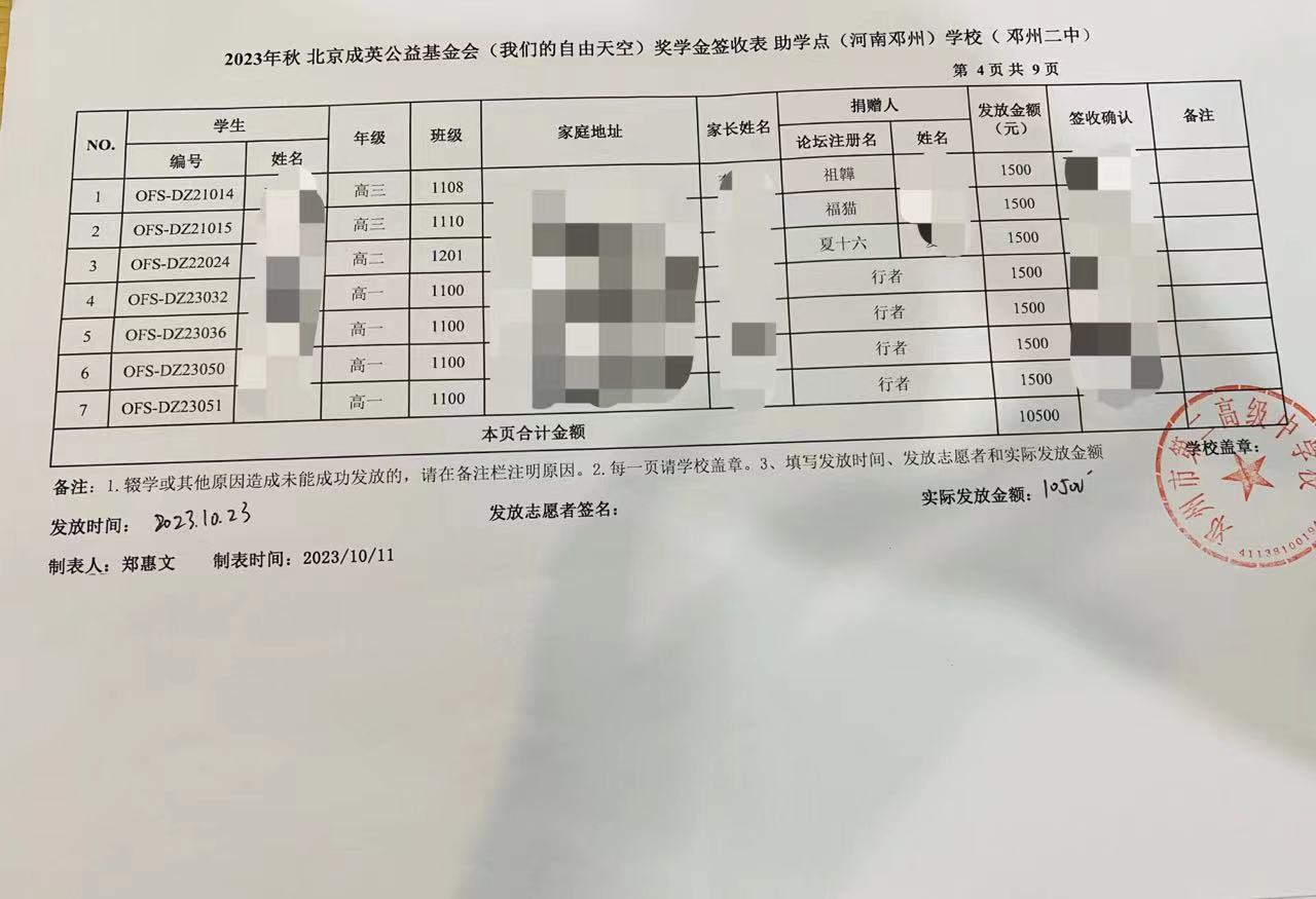 河南邓州2023年秋季奖学金发放于10月23日顺利发放完成。
