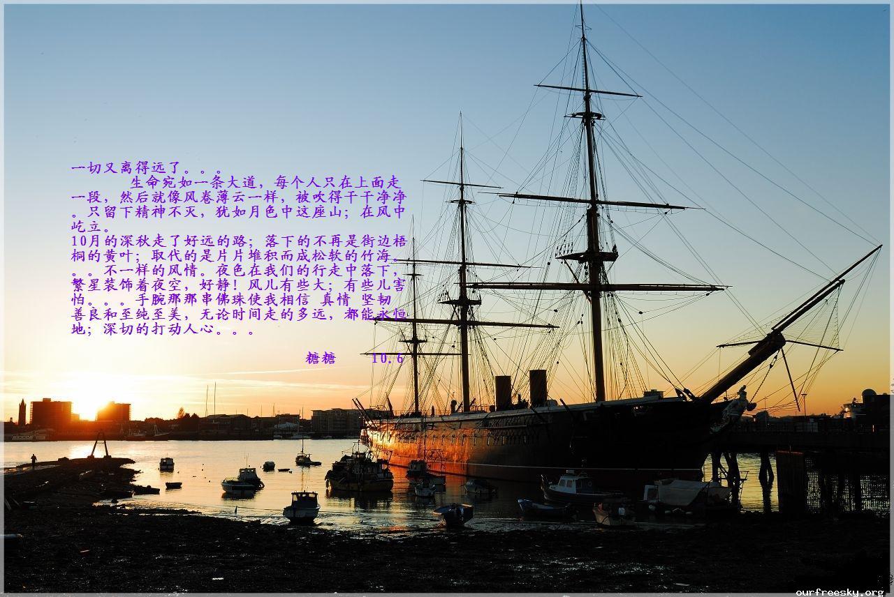 准备远行天色已晚落日余辉船帆已落休息一下明天出发