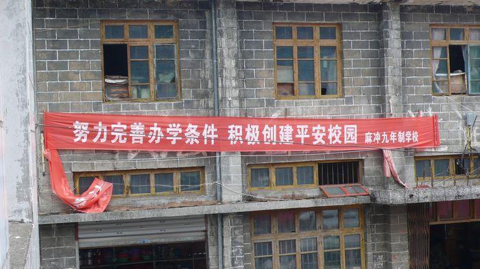 麻冲中心校(九年制学校)全校有700多个学生。正在建操场。
