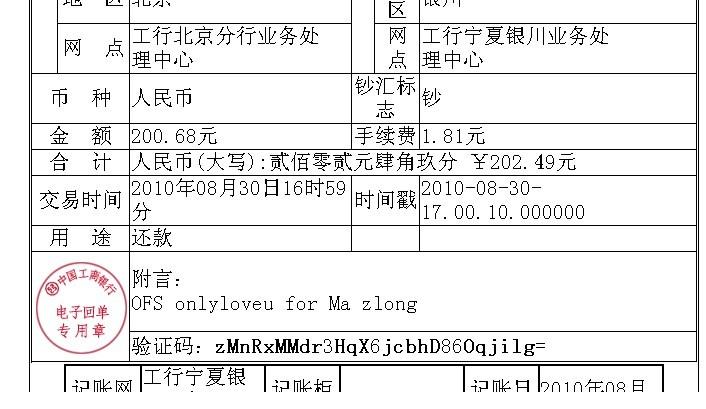 网银流水号: 100000062021 交易时间: 2010-08-28 03:36:30