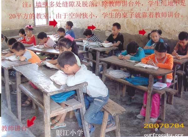 银江小学是完小,(每年级一个班,加上一个学前班,一共七个班。)但离主路较远,很少有师范毕业生愿意到这里来教书,教师不够。从其他村里招了三个代课老师。