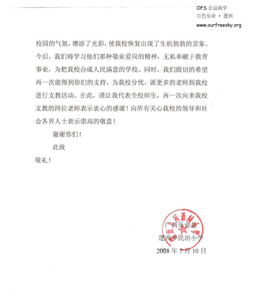 来自乐业逻西乡民治小校的感谢信 [复制链接]