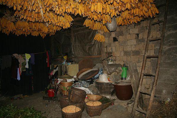 我们到的时候,恰逢收玉米的时候,家家户户几乎都有一堆玉米。和其中某家大人们聊起来,这家每年收2000斤稻谷,700~800斤,都是不到1块钱卖出,所以种地的收入每家都差不多,2000~3000之间,还没有计算成本。家里有壮劳力出去打工的,条件会好些。