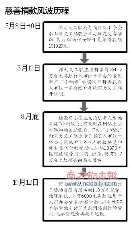 s](aNe2j b `2|I { 义友在网络论坛上的“口水”,险些将“小蚂蚁”淹死。但淹不了的事实是,今年8月底之前,“小蚂蚁”曾经是义友们心中的精神领袖,深圳诸多民间爱心公益募捐活动中,“小蚂蚁”的身影无处不在。