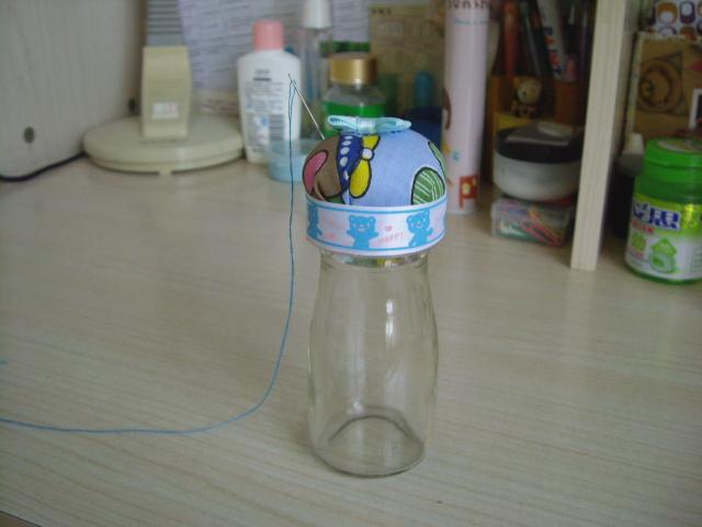 宝贝描述:即可以做装饰有可以做针插,-下面的玻璃瓶里可以放多余的针线,纽扣珠子什么的~~ 9{u=