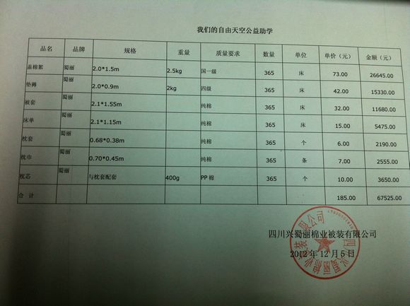 2012年12月4日该批棉被套装共计365套已由四川省彭州市专车发往木里县城。一点点爱心、一股股暖流汇聚起来,积少成多,滴水成河,让孩子们在寒冷冬夜不再挨冷受冻!不用再早上六点起床靠活动取暖了。感谢各位的爱心与支持! 8>+eGz|