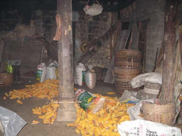 (这里穷困的最主要原因就是交通不便,我们走这一个组,一共十几户人家,却花费了几乎整整一天的时间,路上不但没有通任何车辆,而且全都是崎岖的山路,坑坑洼洼,稍不留神就会摔到甚至摔伤,三月的手臂就因此挂了花。想想那些村民,几乎每天都面对这样的环境,一年的收获也是靠两脚走出深山来换点收入,养育孩子,供孩子读书。在三、五组村民的家里,我们几乎都无语地完成OFS总部叫给我们的回访任务,害怕多问一句就会让自己的眼泪流出眼眶。而有些村民的坚韧和乐观,真的让我们觉得能够帮助他们是我们最大的幸福)