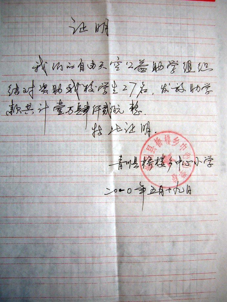 看到我资助的学生已经由代理人签收了助学款,辛苦走访的各位了,辛苦了。