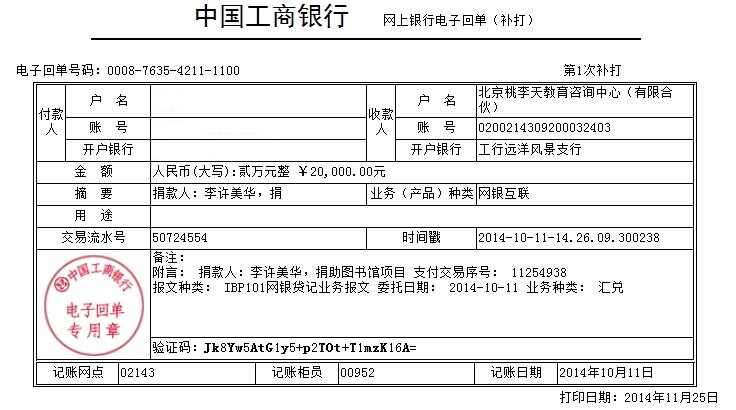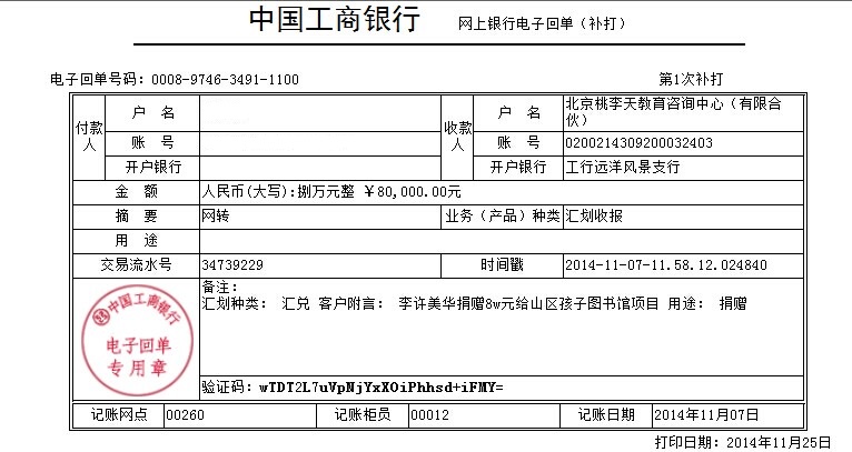 收到李许美华赠款壹拾万元整 ¥100,000.00元 [复制链接]