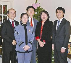 以第一名成绩自西点军校毕业的刘洁(左二),已经成为全家人的骄傲,图为刘洁与其家人合影。(刘洁提供)