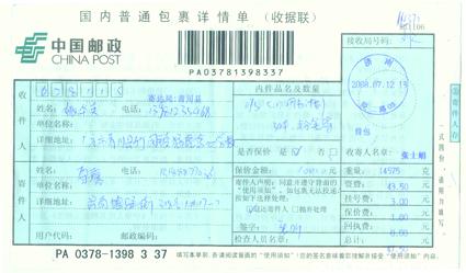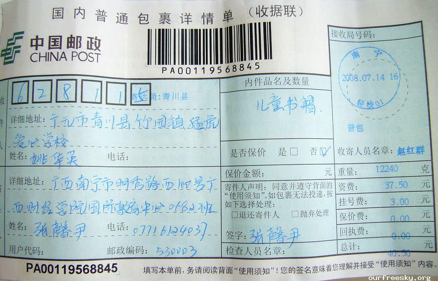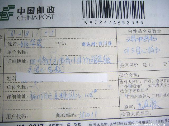 非常抱歉,因为前段时间一直在忙,13号才把97本书按网站所给寄出 Q%o:*(x[O