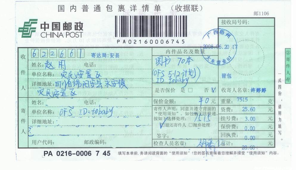 OFS 5.12桃李满天下爱心图书计划自6月1日开展以来,已得到了各地志愿者和爱心人士的大力支持,使整个计划正如期地推进,目前已正式在各地开展了书籍募捐活动,同时接受广大爱心人士的个人捐书,现将个人捐书地址公布如下: 1&^MfP}